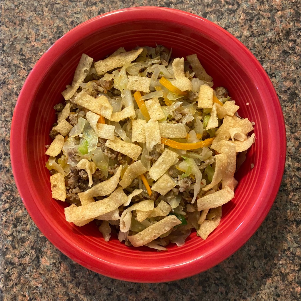 - Cover the skillet with a lid and allow to cook over medium heat until the coleslaw mix is wilted (about 5-7 minutes)