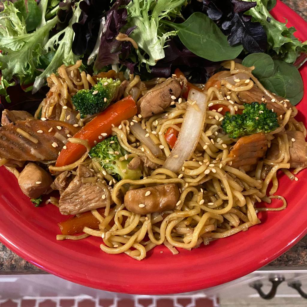 - 1 package (6 ounces) chow mein stir-fry noodles (I use Wel-Pac brand)