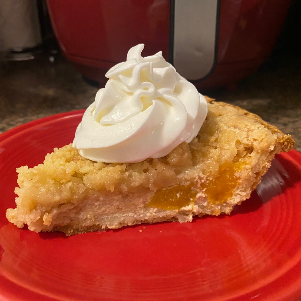 - Sprinkle the topping evenly over the pie filling.