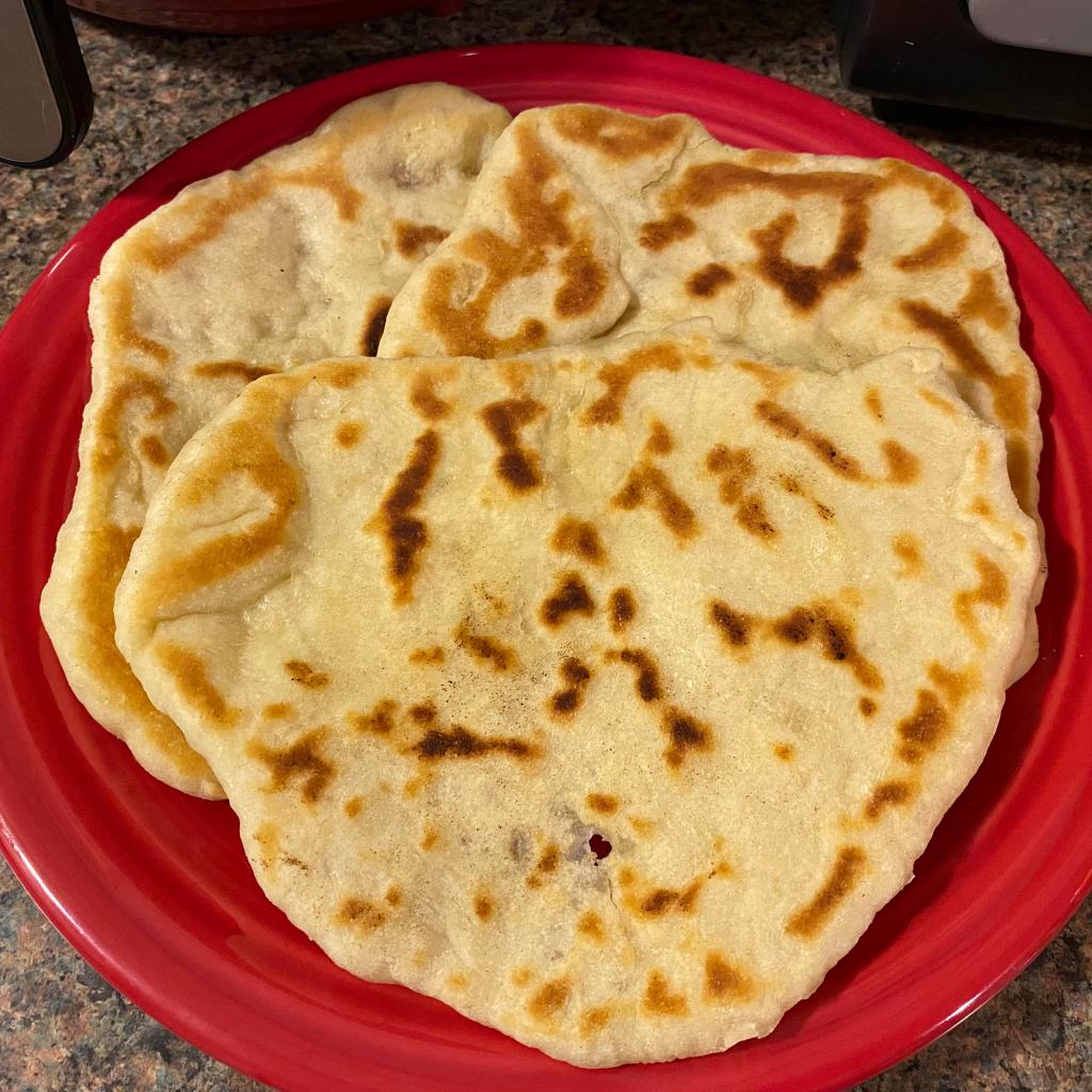 - Transfer the naan to a plate and cover with a cloth to keep warm.