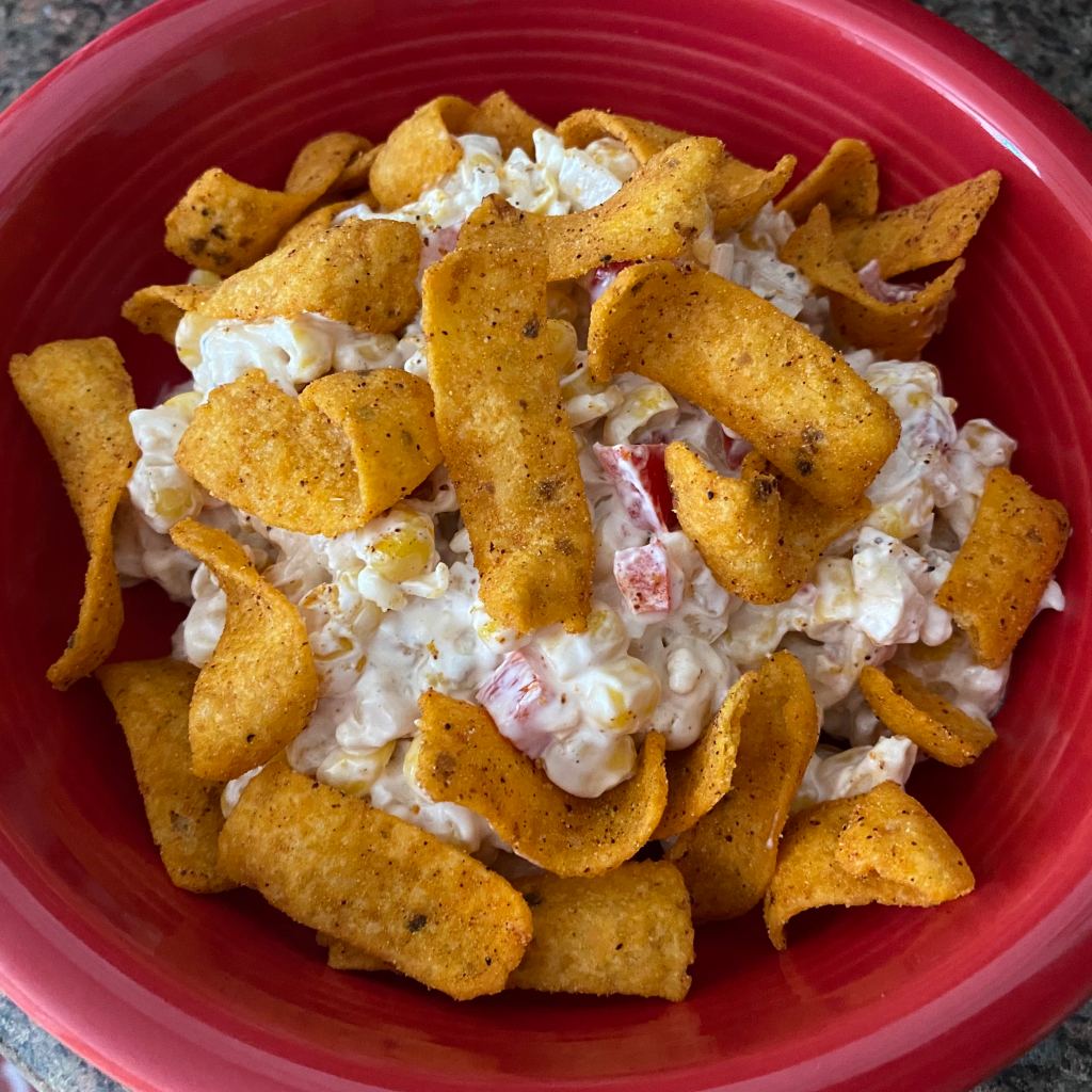 - 1 bag (10.5 ounces) Chili Cheese Fritos corn chips, slightly crushed