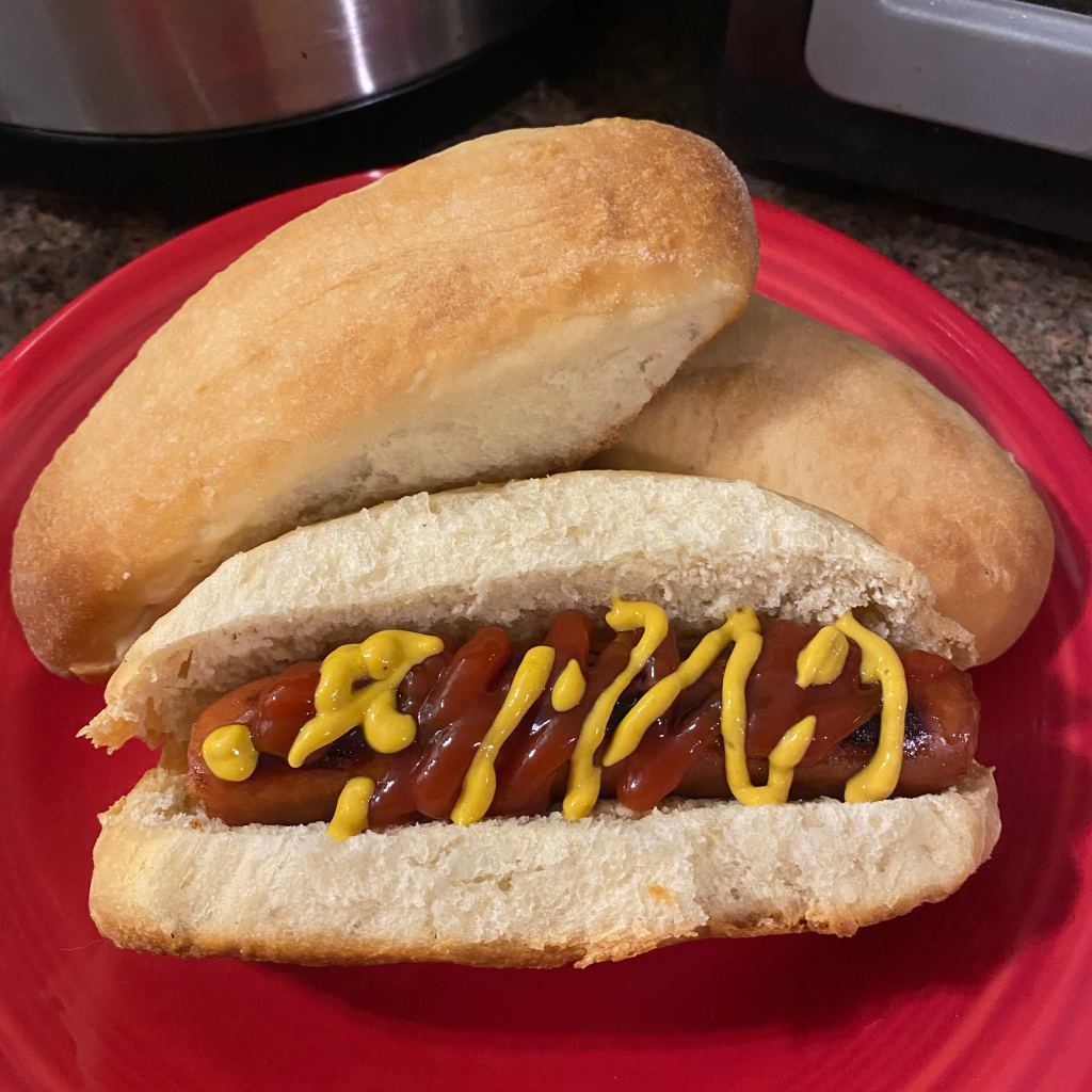 The original recipe for these soft and flavorful hot dog buns can be found here.