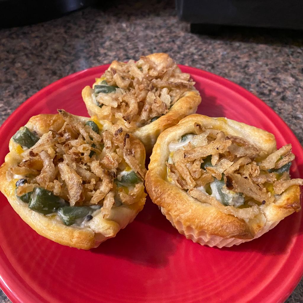 - Spoon the green bean casserole filling into each cup, filling them to the top.