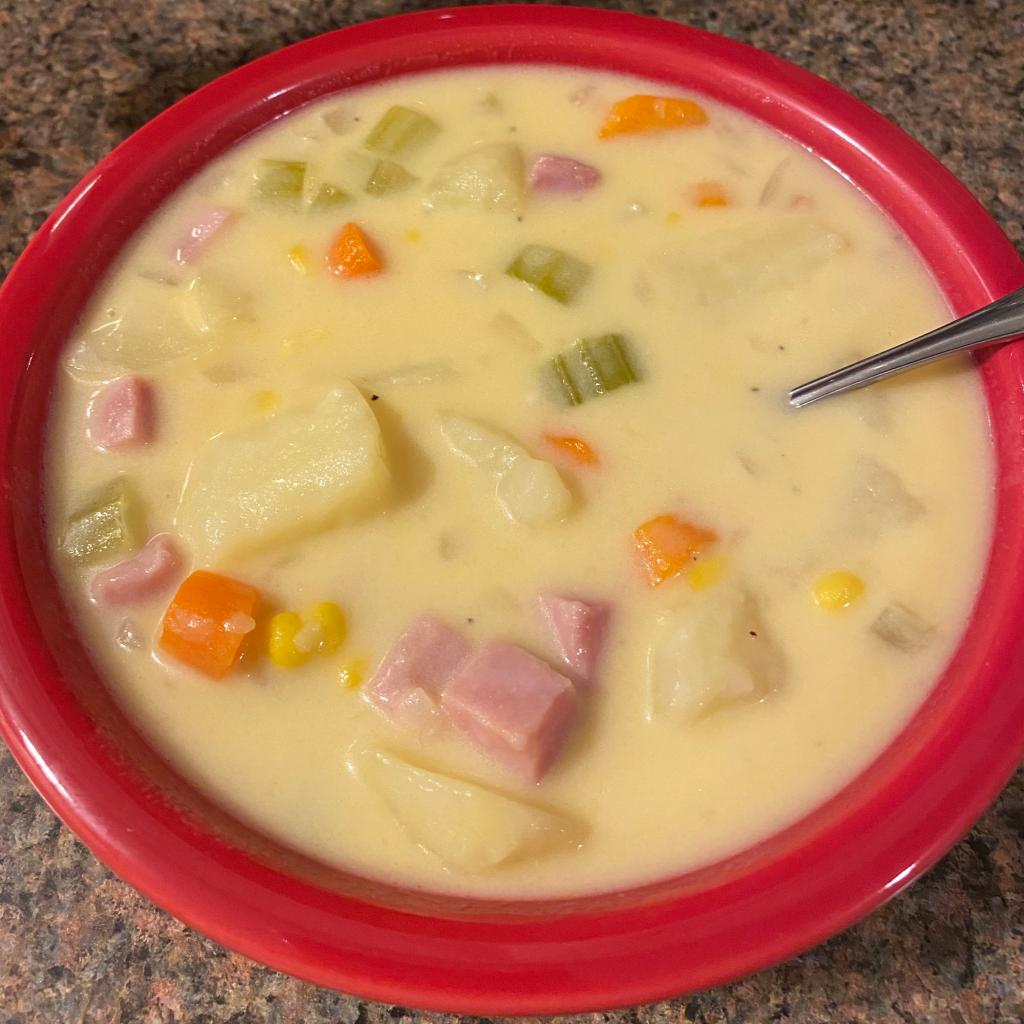 - Lower heat and simmer the soup for about 10 minutes or until potatoes are tender.