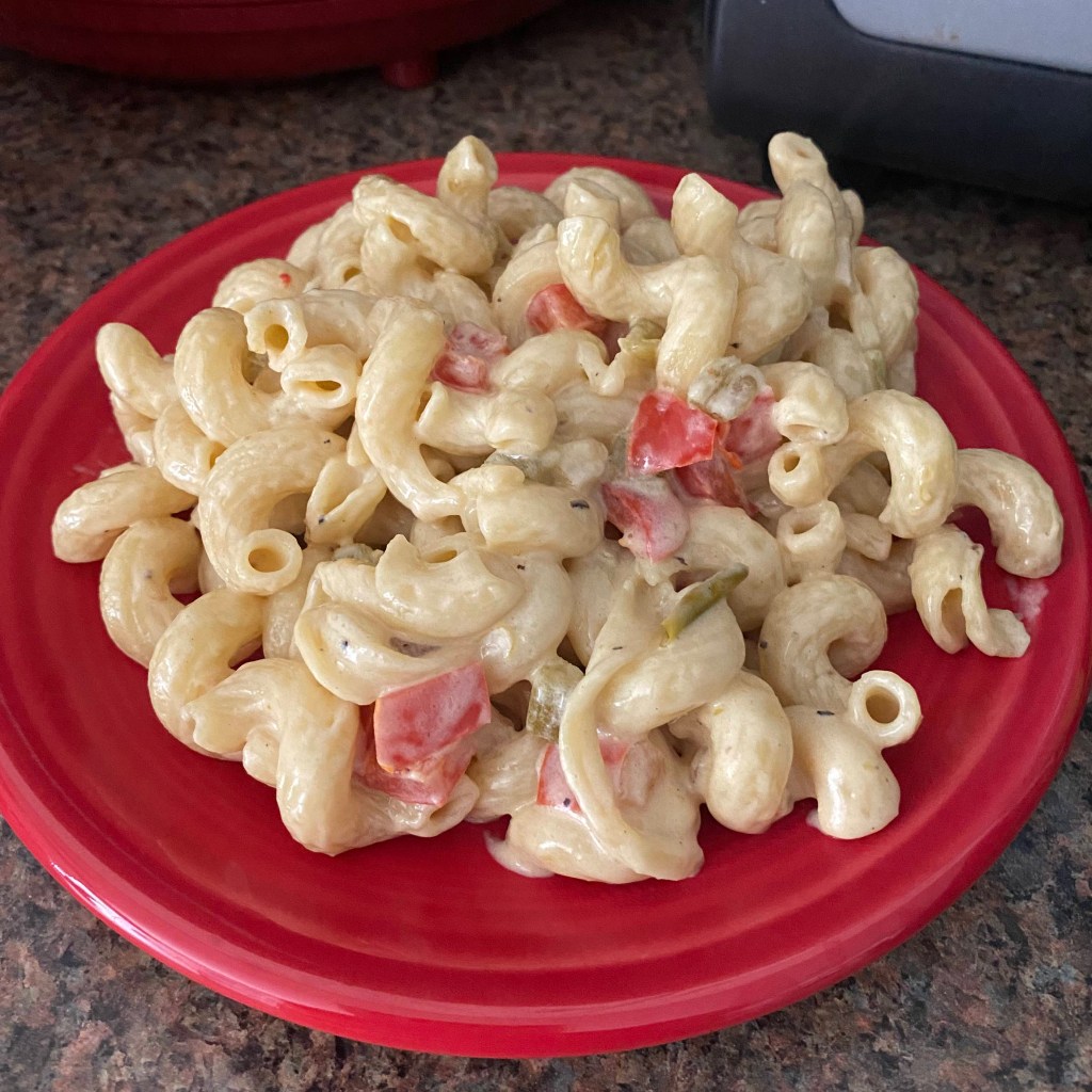 - To the cooked and drained pasta, add the sautéed vegetables and prepared queso, stirring until well combined.