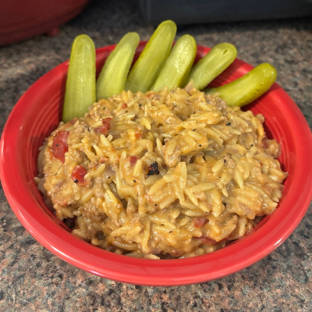 I found the original recipe for this tasty cheeseburger pasta dish on Facebook.