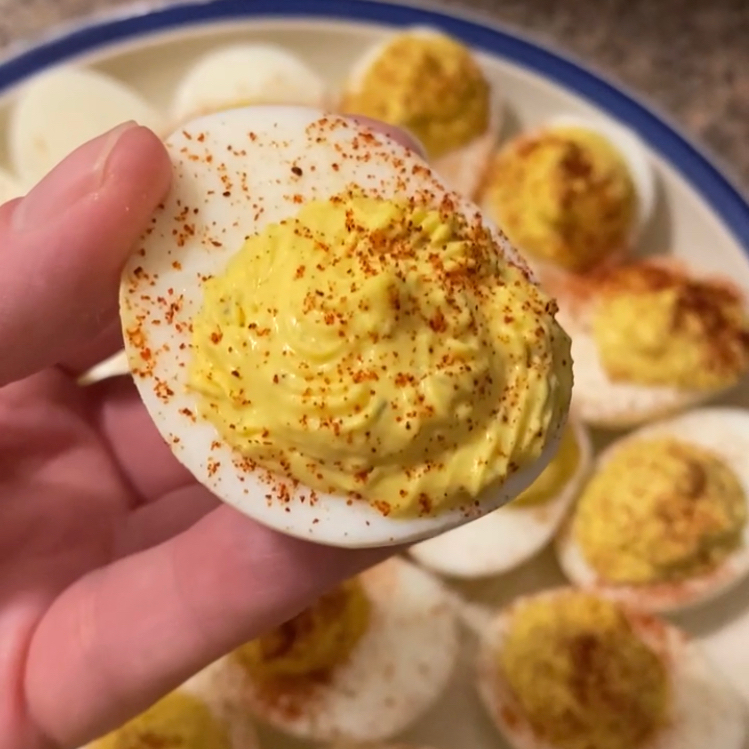 - Boil eggs and place in an ice bath to cool (also stops the cooking process).